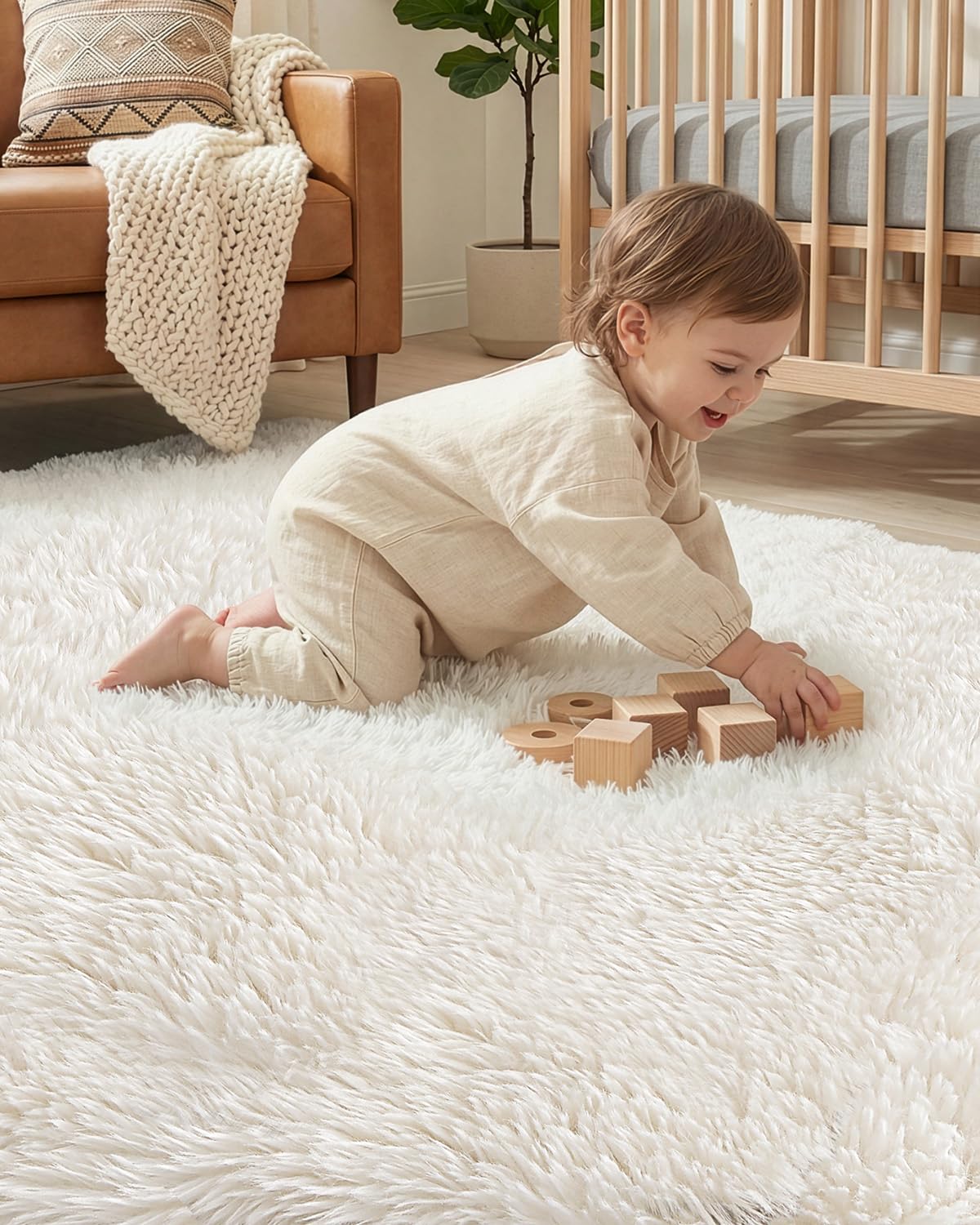 - Kid and Pet Friendly: Gentle texture offers comfort for little feet and paws, making it suitable for barefoot walking or tummy time. The furry appearance creats a cozy zone where kids and pets can enjoy their time together