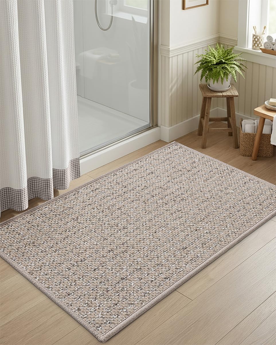 DEXI Bathroom Rug Non Slip Washable, 24x36 Ultra Thin Bath Mat, Absorbent Quick Dry with Rubber Backing, Low Pile Bath Rugs for Shower Floor, Sink, Beige