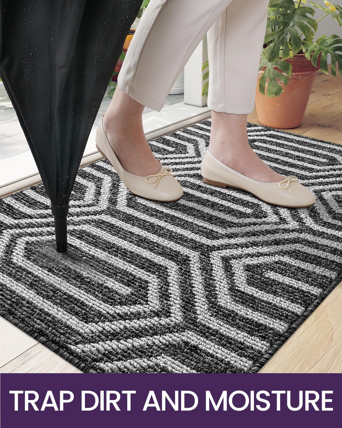 - Trap Dirt and Moisture: Keep entryway dry and clean with the simple addition of exquisitely efficient doormat. Eliminates dirty and wet foot prints when you entering the house. Our indoor door mat scrap off dirt, water, dust, sand, mud, slush, grass, snow
