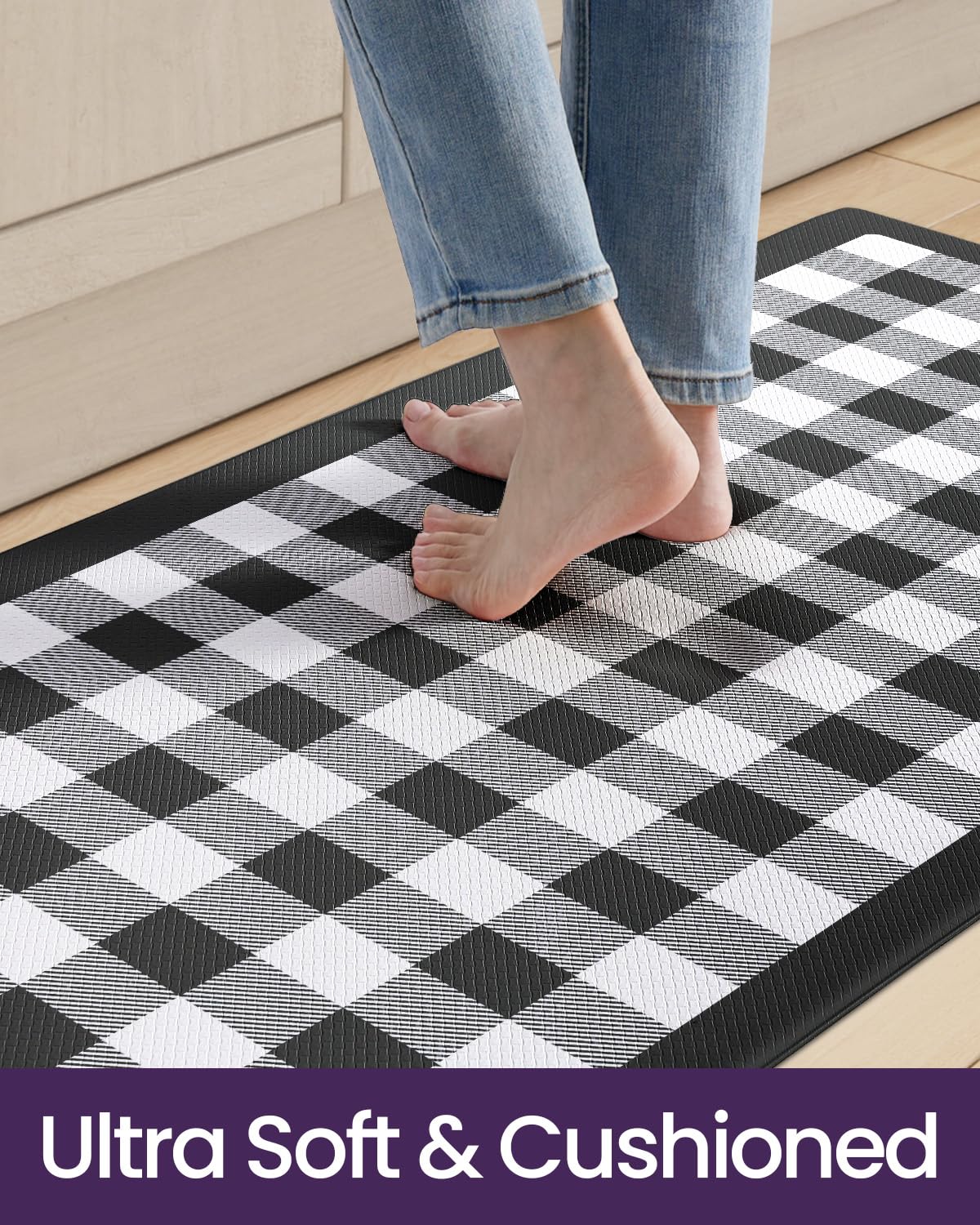 - Multiple Scenes Use: Available in checkered pattern, our cushioned kitchen mats enhance any home decor. Perfect for the kitchen, laundry room, or office, the combination of stylish design and comfortable cushioning makes these mats a versatile addition to any space
